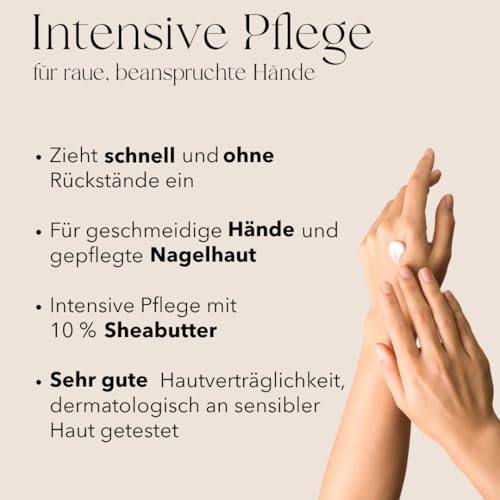 ✅ INTENSIVE PFLEGE 10% Sheabutter Anteil sorgt für intensive Pflege für raue, beanspruchte Haut. Hinterlässt ein pflegendes, geschmeidiges Hautgefühl ohne zu fetten. Schützt die Haut und das Nagelbett so vor Fett- und Feuchtigkeitsverlust.