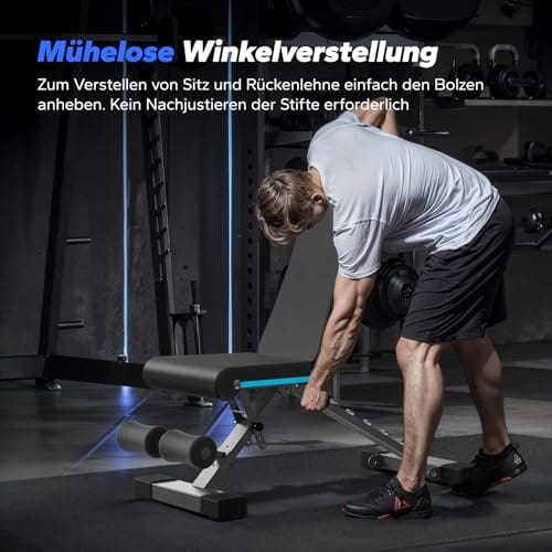 72 Verstellbare Trainingswinkel:Mit 6 Rückenlehnen-Positionen,4 Sitzverstellungen und 3 Fußstützen-Konfigurationen bietet diese Hantelbank klappbar 72 individuelle Einstellungen – ideal für Bankdrücken, Isolationsübungen und Ganzkörper-Workouts aller Fitnesslevels