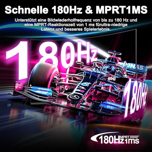 Hochauflösend & Schnell: Mit einer Auflösung von 1920×1080 und einer erstaunlichen Wiederabgabegeschwindigkeit von bis zu 180Hz, erleben Sie glatte Grafiken und schnelle Reaktionen in Ihren Spielen.