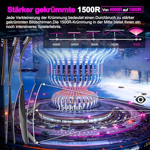 Minifire 24 Zoll Curved Gaming Monitor 180Hz, 1ms, FHD PC Bildschirm 1500R, Mit Lautsprechern, FreeSync, HDR, 130% sRGB, Rahmenlos, HDMI1.4/DP1.2 Ports -Schwarz (MFG24C1 mit HDMI-Kabel)