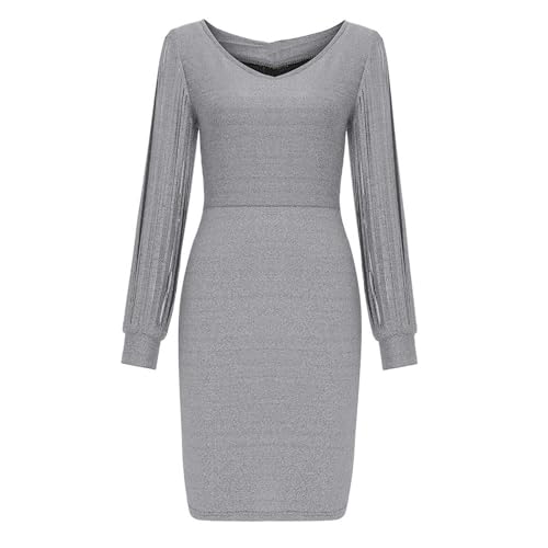 Details: MOKBAY Glitzer Kleid Damen V-Ausschnitt Kurz Sexy Abendkleid Langarm Festlich Pailletten Cocktailkleid Ballkleid Mode Party Kleider