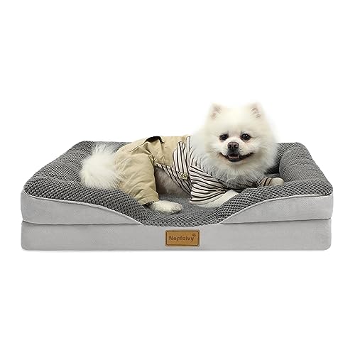 Nepfaivy Orthopädisches Hundebett Kleine Hunde – Hundekorb Hundesofa Waschbar mit Eiförmigem Kistenschaum, Hundecouch mit Hohem Rand und Rutschfestem Boden für Kleine Hunde, 76x55cm