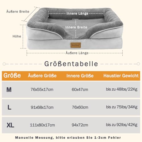 KUNDENDIENST: Dieses Hundebett ist vakuumverpackt. Bitte lassen Sie es nach dem Auspacken min. 48h liegen, damit das Hundebett sich vollständig entfalten kann. Nicht empfohlen für Haustiere mit starkem Kautrieb. Das hellgraue/dunkelgraue Aussehen des Hundebettes ist optisch ansprechend und passt zu Ihrer Einrichtung. Wenn Sie Fragen zu unserem Hundebett haben, können Sie uns gerne kontaktieren. Wir werden Ihnen innerhalb von 24h eine zufriedenstellende Lösung anbieten.