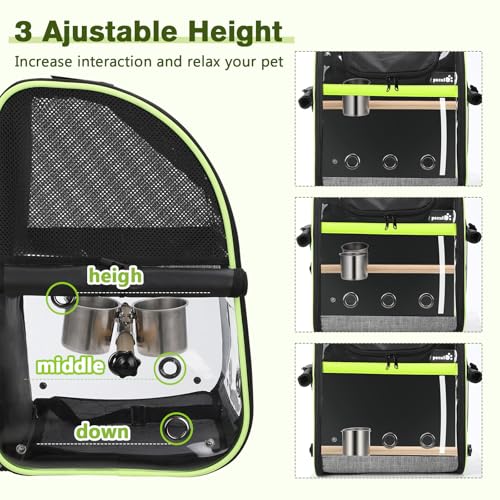 【Breites Einsatzspektrum】abnehmbarer Holzständer, 35 cm lang und 2 cm Durchmesser. Es gibt 3 einstellbare Höhen, die Sie selbst einstellen können. Empfohlen für Conures, Nymphensittiche, Quäker, Caciques, Mini-Aras, kleine Kakadus, Lories und andere Papageien ähnlicher Größe. Lösen Sie die Muttern auf beiden Seiten und entfernen Sie die Holzstange. Es kann auch als täglicher Haustierrucksack für Katzen, Hunde und andere Haustiere verwendet werden.