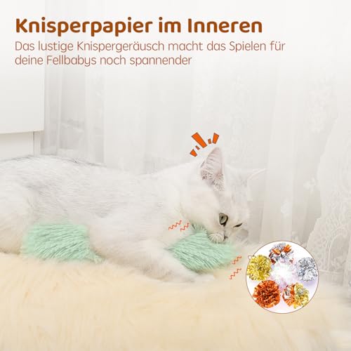 Spannendes Knistergeräusch – Mit knisterndem Papier im Inneren für extra Spaß. Katzen lieben den bewegenden Sound beim Beißen und Raufen, das macht das interaktive spielzeug noch aufregender und hält sie länger beschäftigt.