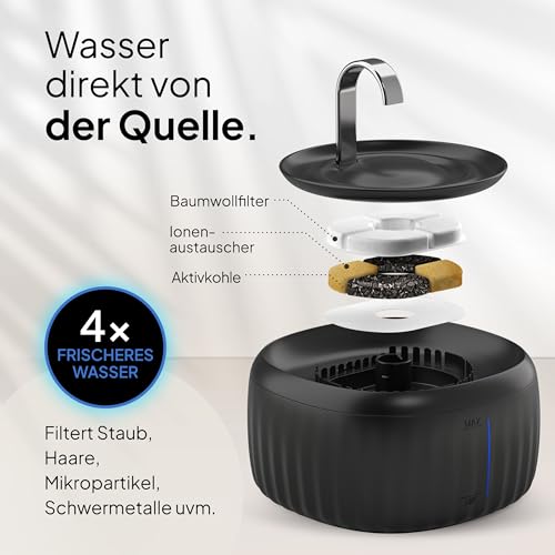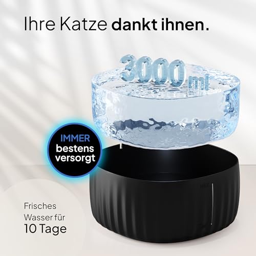 Großzügiges Fassungsvermögen – Mit einem Fassungsvermögen von 2.8 Litern bietet der Wasserspender Katzen ausreichend Wasser für Ihre Katze, um den ganzen Tag über hydriert zu bleiben.