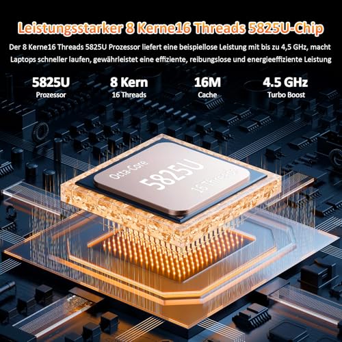 ✨Ausgezeichnete Rechenleistung:Der Pryloxen gaming Laptop wird von einem Octa-Core 5825U Prozessor mit Radeon Graphics angetrieben, der über 8 Kerne und 16 Threads, 16 MB L3-Cache und eine Taktrate von bis zu 4,5 GHz verfügt. Mit einem Stromverbrauch von nur 15 W meistert er mühelos eine Vielzahl komplexer Anwendungen und steigert die Arbeitseffizienz erheblich.