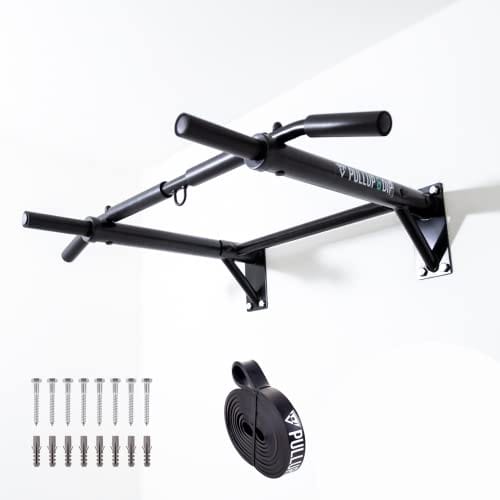 PULLUP & DIP Klimmzugstange Wand, Profi Multigriff Pull-Up Stange für Wandmontage inkl. Schrauben, Klimmzug Band und eBook, bis 200 kg