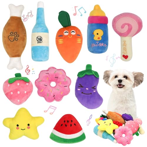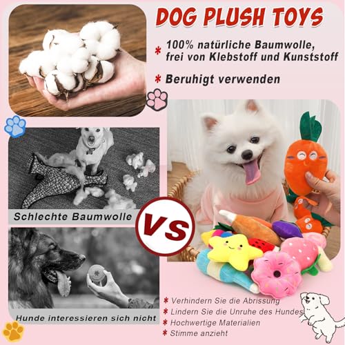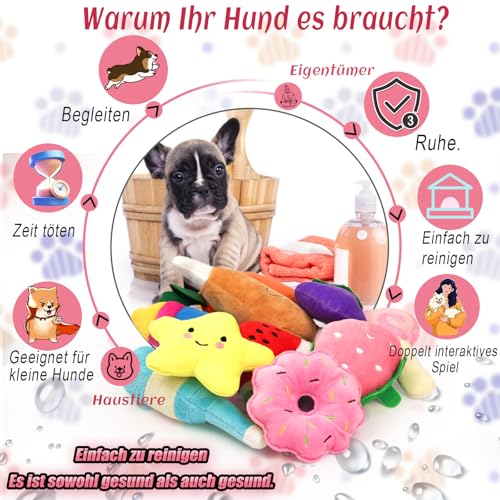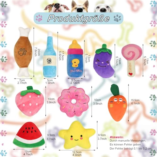 10 Stück Quietschspielzeug Plüsch Hundespielzeug, Obst Snacks und Gemüse für Hunde Quietschendes Spielzeug für Haustier Interaktives Spielzeug für Hunde