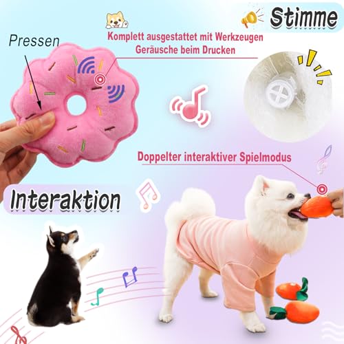 2.Die Hundespielzeuge sind mit integrierten Quietschgeräuschen ausgestattet, um Ihren Welpen anzulocken und zu erregen, seinen Jagdinstinkt und sein Kauverhalten zu befriedigen und ihn am Spielen interessiert zu halten.