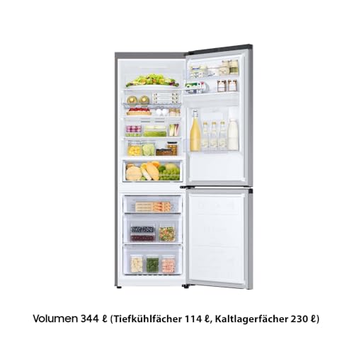 Samsung Kühl-Gefrier-Kombination, Kühlschrank mit Gefrierfach, 185 cm, 341 l Gesamtvolumen, 114 l Gefrierteil, AI Energy Mode, Wasserspender, Edelstahl-Look, RL34C652CSA/EG