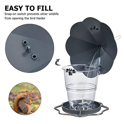 Große Kapazität: Futterhaus für Vögel kann bis zu 40 oz/2,5 lbs Futter aufnehmen. Es können verschiedene Futtermittel gefüllt werden, um Vögel anzulocken, wie Erdnüsse, Sonnenblumenkerne mit schwarzem Öl, Saflorsamen, um Kardinäle, Meisen, Hausfinken, Vögel, Drosseln, Grasmücken, Stare usw. anzulocken