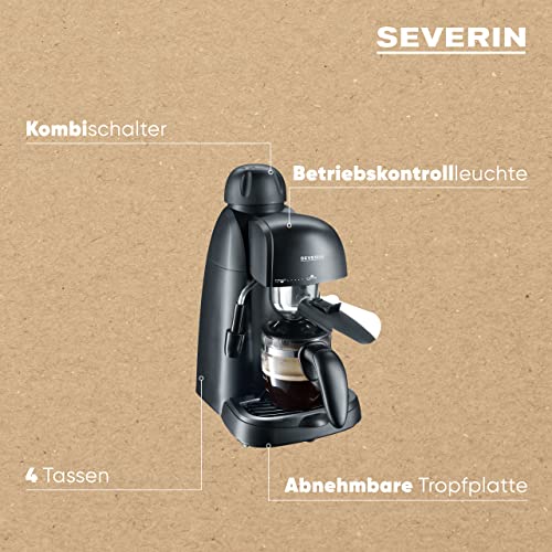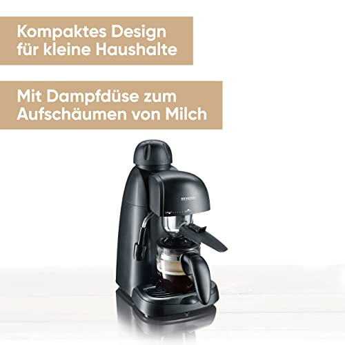 SEVERIN Espressomaschine, kleine Kaffeemaschine für bis zu 4 Tassen Espresso, Kaffeemaschine mit Milchschäumer für Kaffee-Milch-Spezialitäten, ideal für Singles, schwarz, KA 5978