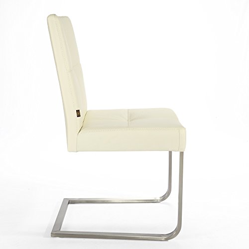 SIX Freischwinger Lederstuhl Libero | Edelstahl Stuhl Leder-Stühle Rindsleder Creme Weiss