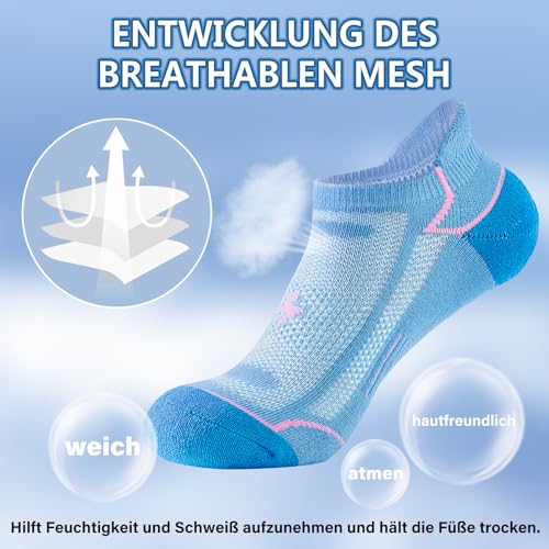 Details: Sneaker Socken Damen 39-42 35-38, Socken Damen Atmungsaktive Anti-Blasen Baumwolle 6 Paar, Sportsocken Kurze Gepolsterte Multi Athletic Laufsocken