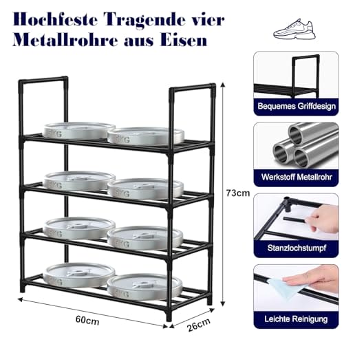DAUERHAFT&PRAKTISCH: Das schuhregal metall besteht aus verstärktem Stahlrohr und einem robusten PP-Rahmen für schuhregal klein, was das Schuhregal sehr stabil macht. Jede Etage kann bis zu 8 kg tragen und bietet eine starke Unterstützung für Ihre Schuhe, die gesamte Struktur des schuhregal metall ist solide und zuverlässig und hat eine lange Lebensdauer.