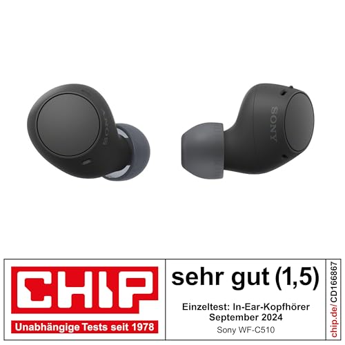 Sony WF-C510 Truly Wireless Kopfhörer – Kleine, leichte Bluetooth In-Ear-Kopfhörer mit Multipoint-Connection, Ambient Sound, IPX4 Rating, Spotify Tap, Quick Charge, 22 HR Akku, iOS & Android – Schwarz