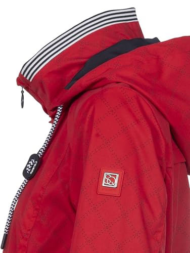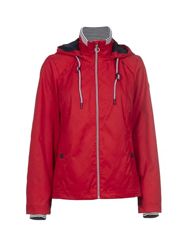 Modische Jacke mit Allover-Karomuster. Die Kapuze mit Kordelzug und ein gestreifter Einsatz im Kragen verleihen der Jacke eine maritime und legere Note.