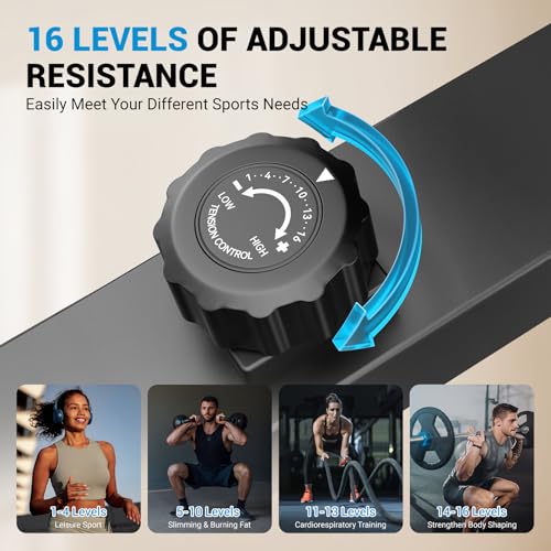 【16-stufiges, anpassbares Training】16 einstellbare Widerstandsstufen passen sich jedem Fitnessziel an, vom Freizeitsport bis zum hochintensiven Intervalltraining. Passen Sie den Spannungsknopf an Ihre Trainingsbedürfnisse in verschiedenen Phasen an – ideal für HIIT, Bergsteigen oder Ausdauertraining