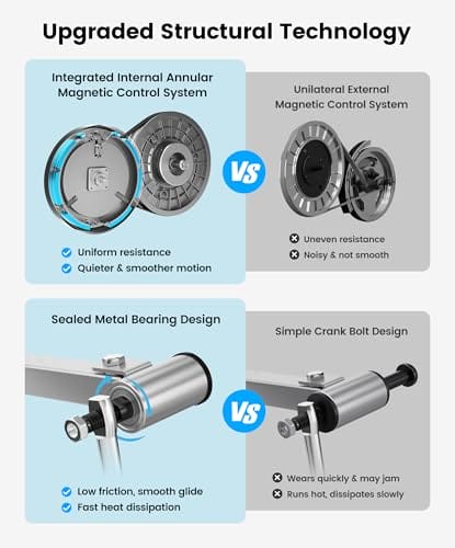 【Ultraleichtes, abgedichtetes Lagerdesign】 Der THERUN Ellipsentrainer ersetzt verschleißanfällige Kurbelschrauben durch ein fortschrittliches, abgedichtetes Metalllagersystem. Dieses Upgrade reduziert die Reibung drastisch, ermöglicht eine natürliche Schrittbewegung und gewährleistet langfristige Zuverlässigkeit – ausgelegt für Millionen von hochintensiven Wiederholungen ohne Ausfall
