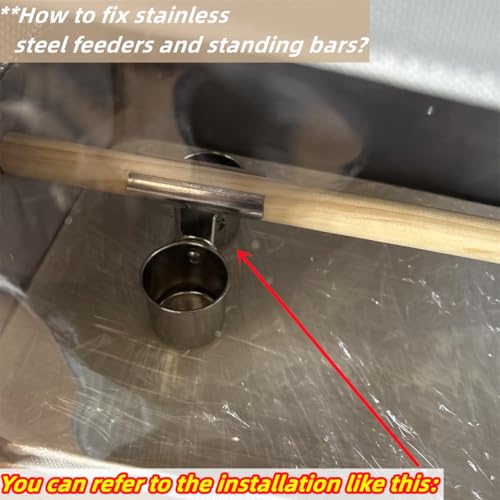 1. Größe des Papageienkäfigs 31*38*24.5cm, Größe des Stocks: 30 cm, Größe der Edelstahl-Clipbecher: 4,4 cm Durchmesser. Bitte überprüfen Sie vor dem Kauf die Produktabmessungen und messen Sie Ihr Haustier aus.