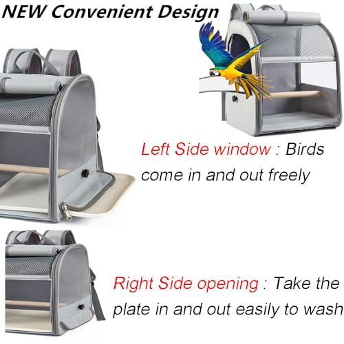 5. Dieser Vogelträger ist durch den oberen weichen Griff tragbar und kann mit dem gepolsterten Doppelgurt auch im Freien mit Rucksack transportiert werden. Empfohlen für Grünwangen, Graue Vögel, Sonnenaras, Miniaras, kleine Kakadus, Nymphensittiche, Lories, Sittich und andere kleine, mittelgroße Vögel