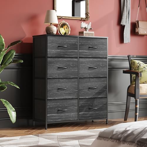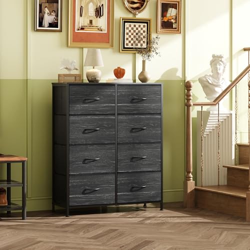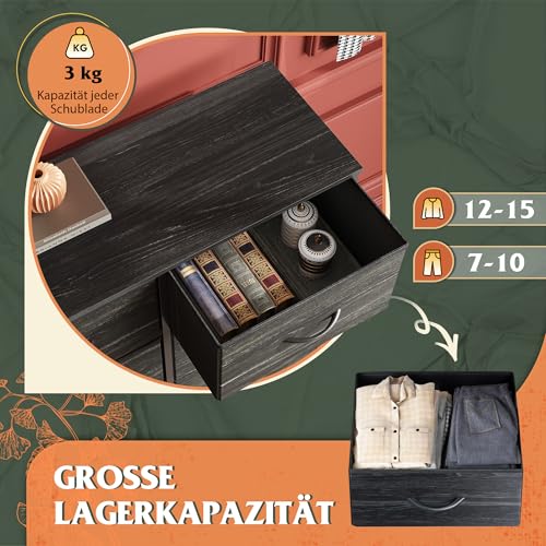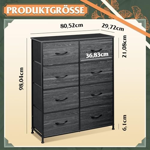 WLIVE Kommode mit 8 Schubladen aus Stoff, Kommodenschrank für Schlafzimmer, Kommode Flur Wohnzimmer, mit Stabiler Metallrahmen, Schwarze Holzmaserung