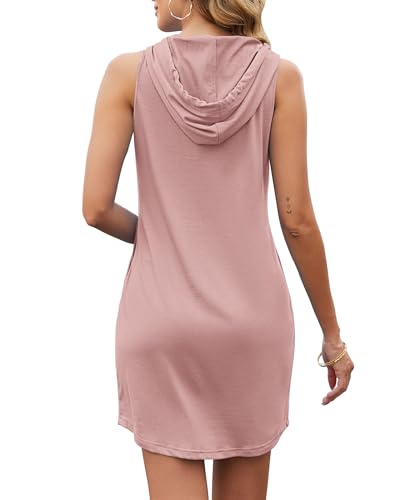 WNEEDU Sommerkleider Damen Kordelzug Minikleid Ärmelloses Tankkleid mit Kapuze