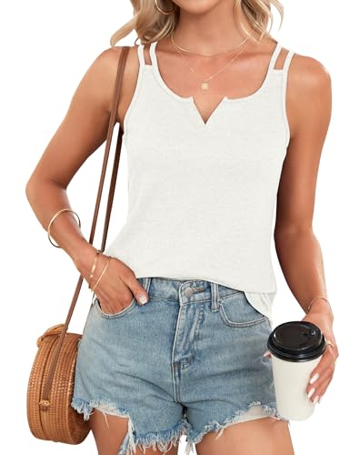 WNEEDU Tank Top Damen Sommer Armellose Oberteile Spaghettiträger Blusentop Cami Shirt V Ausschnitt Sexy
