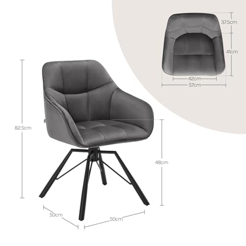 WOLTU Esszimmerstuhl drehbar 6er Set, Küchenstuhl, Polsterstuhl, Drehstuhl, bequemer Stuhl mit Armlehnen Rückenlehne, Armlehnenstuhl für Esszimmer Wohnzimmer, mit Samtbezug, Dunkelgrau
