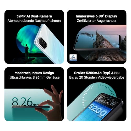 [32MP superklare Bilder] Komplett AI-gestützte Zweifach-Kamera.Ein neues AI-Bildgebungssystem mit Zweifach-Kamera für klarere Bilder und ein verbessertes Fotoerlebnis.