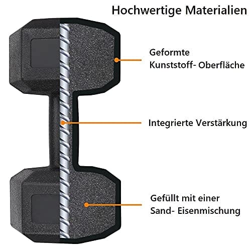 Weicher und bequemer Griff: Das spezielle sechseckige Hanteldesign bietet den ergonomischsten, weichsten und bequemsten Griff, sodass Sie leichter schweres Gewicht heben können.