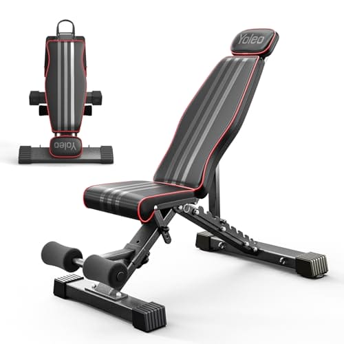 YOLEO Klappbare Hantelbank Multifunktion, Multifunktionale Hantelbank Set mit Ständern für zuhause, Bankdrücken Bank, Verstellbare Hantelbank mit Ablage, Bauchbank mit Gewicht und Beincurl