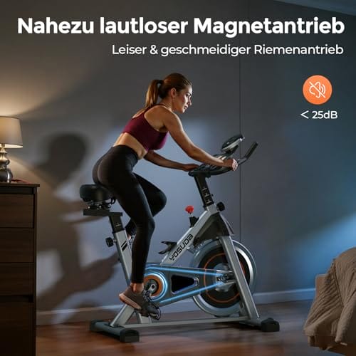 🚴 【 Magnetisches Widerstandssystem für geräuscharmes Training 】 Der YOSUDA 002C Ergometer Heimtrainer nutzt fortschrittliche Magnetwiderstandstechnologie, die den Widerstand ohne physischen Kontakt zum Schwungrad einstellt – völlig frei von Reibungsgeräuschen. So können Sie sich auch bei intensiven Workouts voll konzentrieren, ohne Ihre Mitbewohner zu stören.